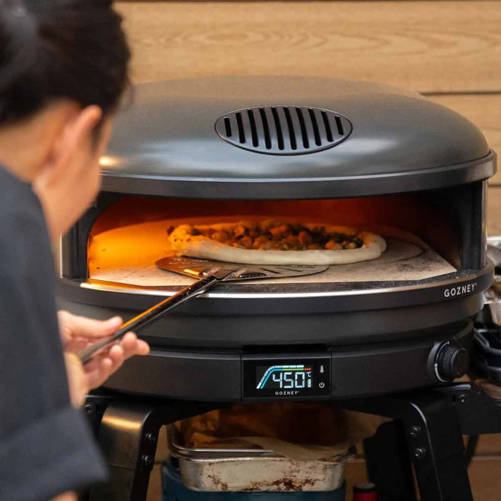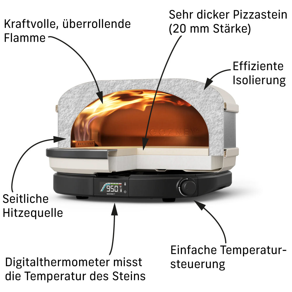 Wir präsentieren den weltweit fortschrittlichstenkompaktesten Outdoorofen. Arc bringt Gozneys berühmtes Designethos in eine schlanke Form, die außen kompakt ist und innen viel Platz zum Kochen bietet. Eine innovative seitliche Rollflamme und der revolutionäre Brenner ahmen die Flamme eines traditionellen Holzofens nach und verteilen die Hitze gleichmäßig und konstant - damit du weniger Zeit mit dem Wenden von Pizzen und mehr Zeit mit dem Zubereiten von Erinnerungen verbringen kannst. Und mit der intuitiven Flammensteuerung des Arc ist es ganz einfach, Pizza in Restaurantqualität zuzubereiten.14"Pizza in Restaurantqualität in 60 Sekunden oder weniger zuzubereiten, was ihn zur ersten Wahl für unser weltberühmtes Pizza Collective macht. Mit dem Arc kannst du an deinem perfekten Platz im Freien so einfach wie nie zuvor epische Pizzen zubereiten.