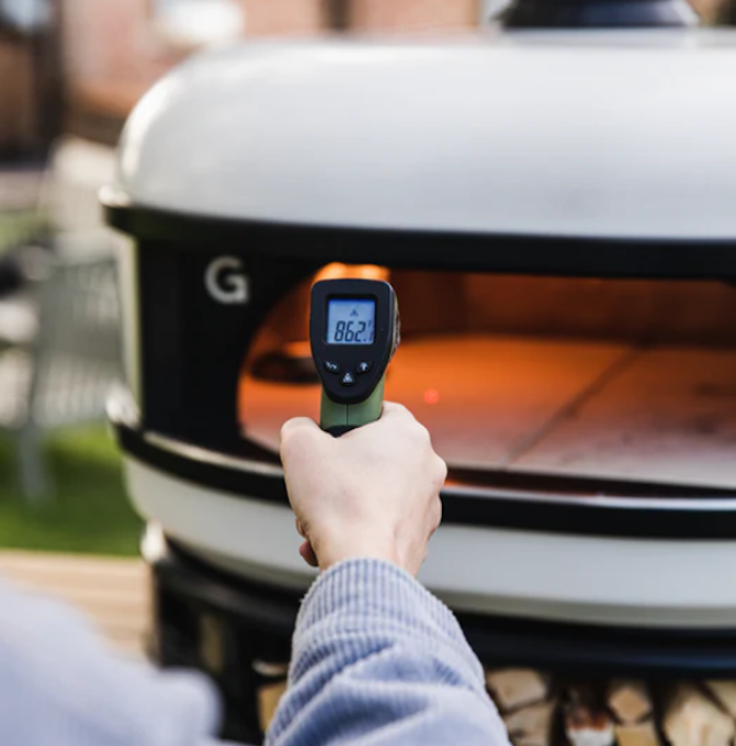 Mit dem Gozney Infrarot-Thermometer weißt du genau, wann der dicke Steinboden deines Pizzaofens bereit ist, eine perfekte Pizza zu backen. Nie mehr im Unklaren, wann die perfekte Gartemperatur erreicht ist - kabellos, präzise und effizient.